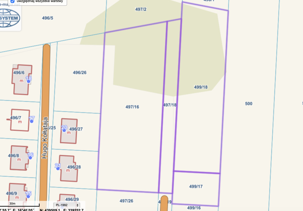 atrakcyjną nieruchomość składającą się z czterech działek o łącznej powierzchni 7324 m2.