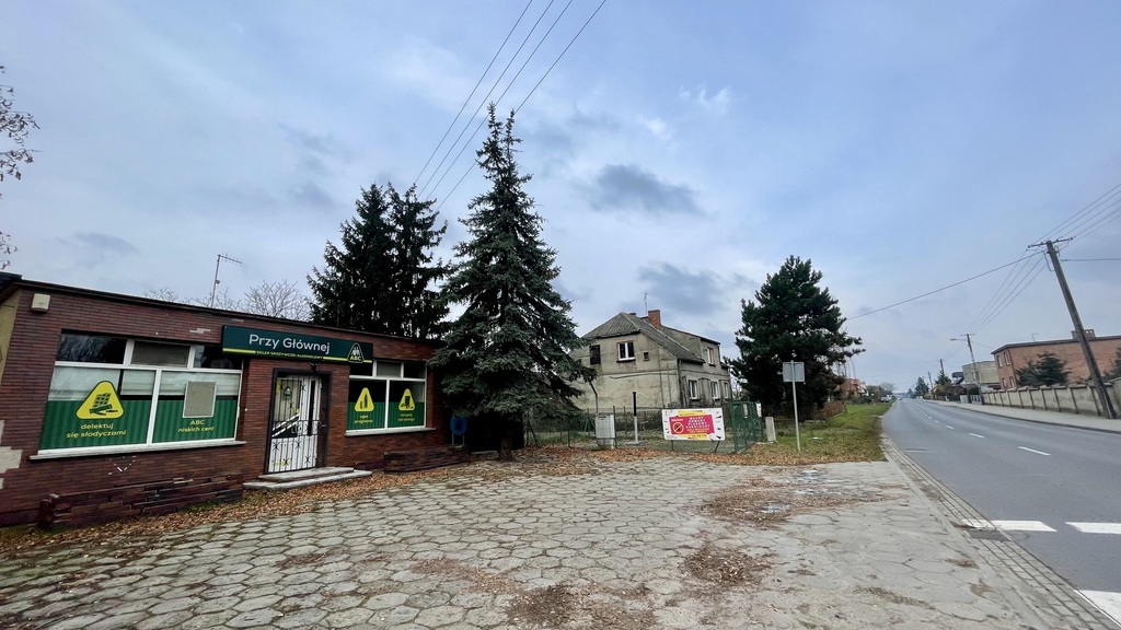 Budynek użytkowy, handlowo – usługowy o powierzchni ok. 70 m2 – plus magazyn drewniany ok. 20 m2 z osobnym wejściem – znajdujący się z boku budynku.