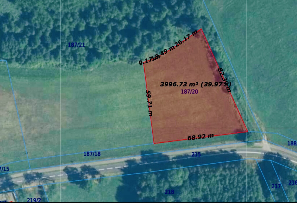 Działka która jest zaznaczona na mapce o powierzchni 4000 m2 jest z możliwością podziału na dwie działki po 2000 m2.