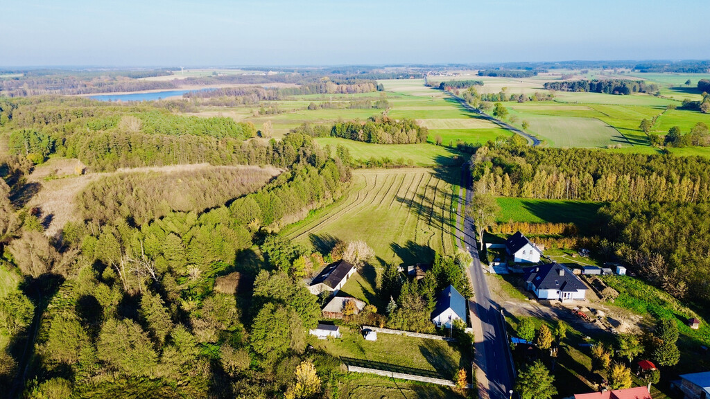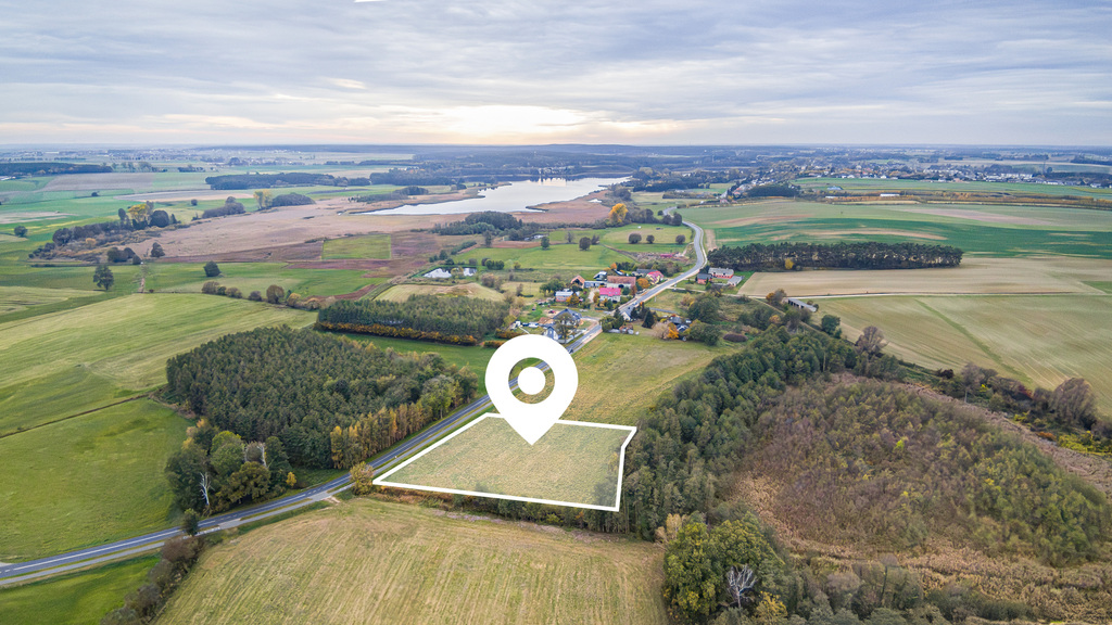 Działka położona jest w malowniczym miejscu , w otoczeniu pól i lasów a także jednocześnie w sąsiedztwie zabudowy jednorodzinnej, z dojazdem drogą asfaltową.
