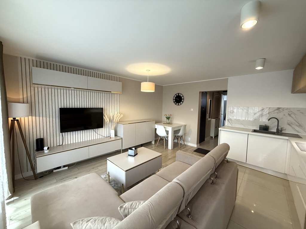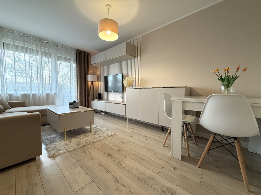 Mieszkanie jest w pełni umeblowane i wyposażone, w tym: